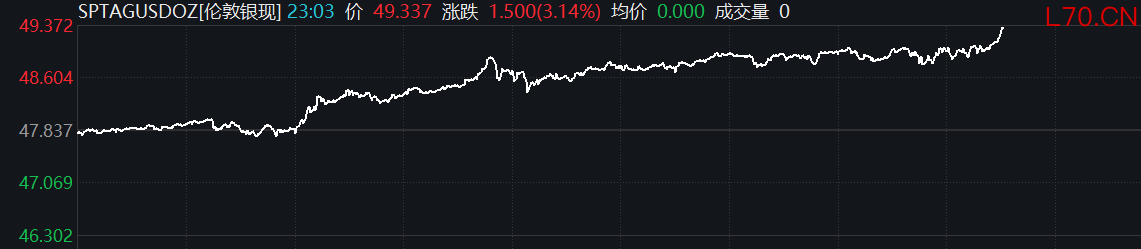 现货白银短线拉升涨超3%现货白银短线拉升涨超3%