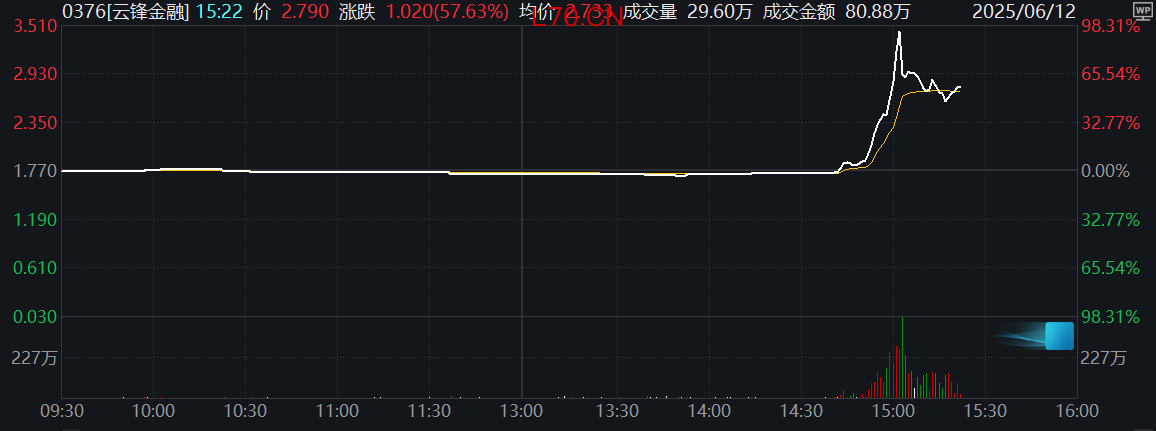 云锋金融盘中一度飙升98%股票K线怎么看云锋金融盘中一度飙升98%