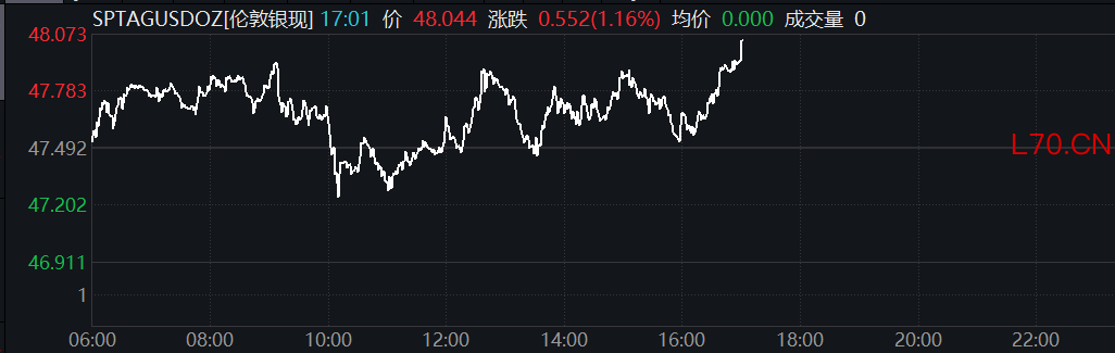 现货白银日内涨超1%现货白银日内涨超1%
