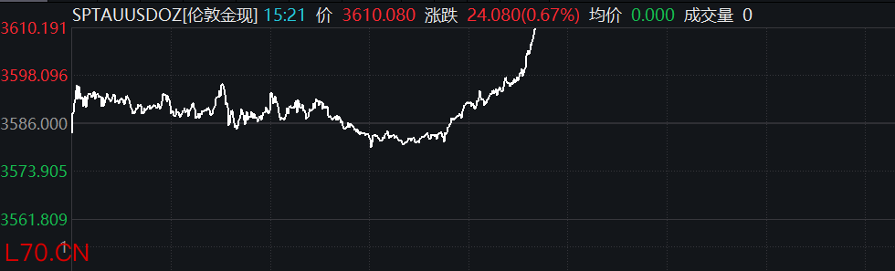 现货黄金向上突破3610美元/盎司现货黄金向上突破3610美元/盎司