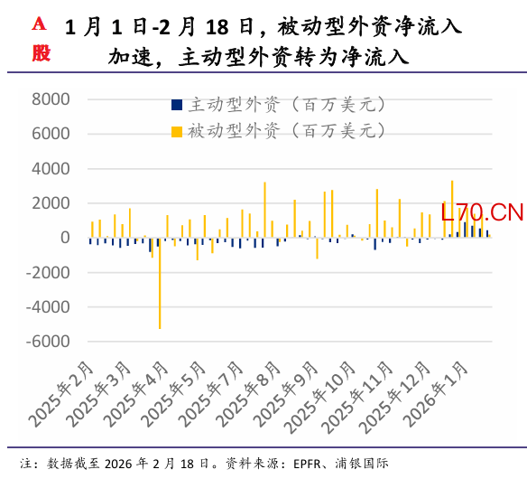 王滢:今年年初开始(一二月份),我们看到了一个非常令人欣喜的变化,也就是全球主动型共同基金对中国资产开始出现净资金流入的现象。被动型资金其实是在2024年“924”行情之后就开始出现持续性的流入,但是主动型基金由于投资决策时长相对较久,投资配置、操作改变偏谨慎,净流入直到今年年初的一月份才开始真正出现。