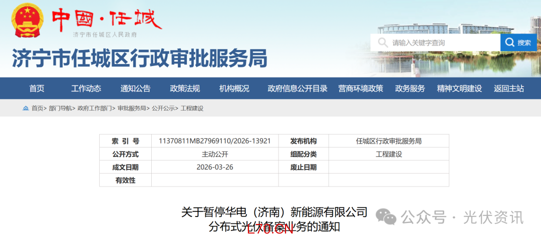 ]article_adlist-->近日【光伏资讯】微信公众号(PV-info)了解到,3月26日,济宁市任城区行政审批服务局发布《关于暂停华电(济南)新能源有限公司分布式光伏备案业务的通知》。配资炒股