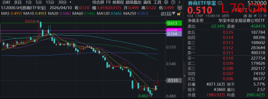 4月10日在线炒股,券商板块久违发力,以规模近350亿元的顶流券商ETF(512000)为例,早盘场内价格涨幅摸高5.48%,带领沪指一度重返4000点上方,收盘上涨3.45%,收复20日线,全天成交额超20亿元,量价齐升。