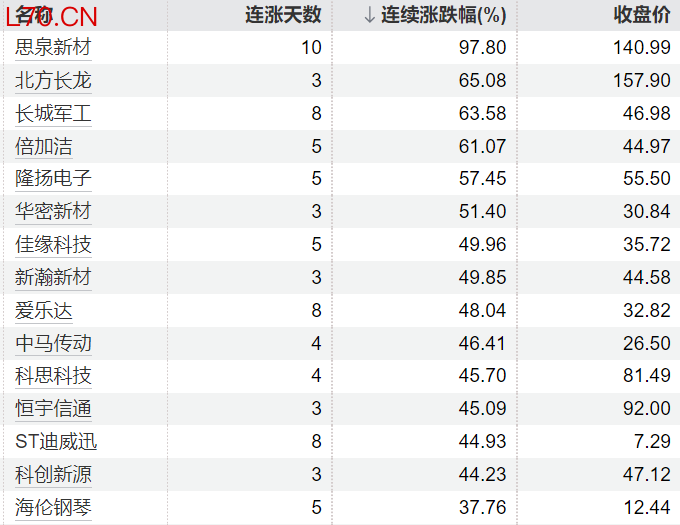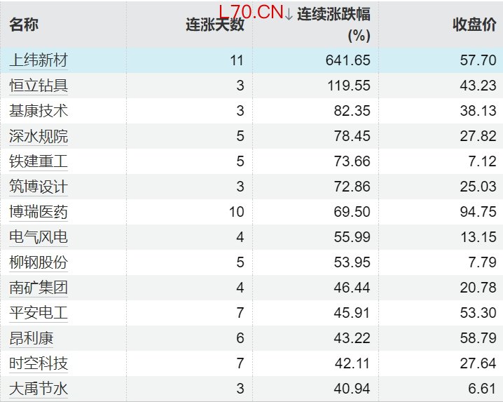 103只个股连续上涨5个交易日及以上103只个股连续上涨5个交易日及以上