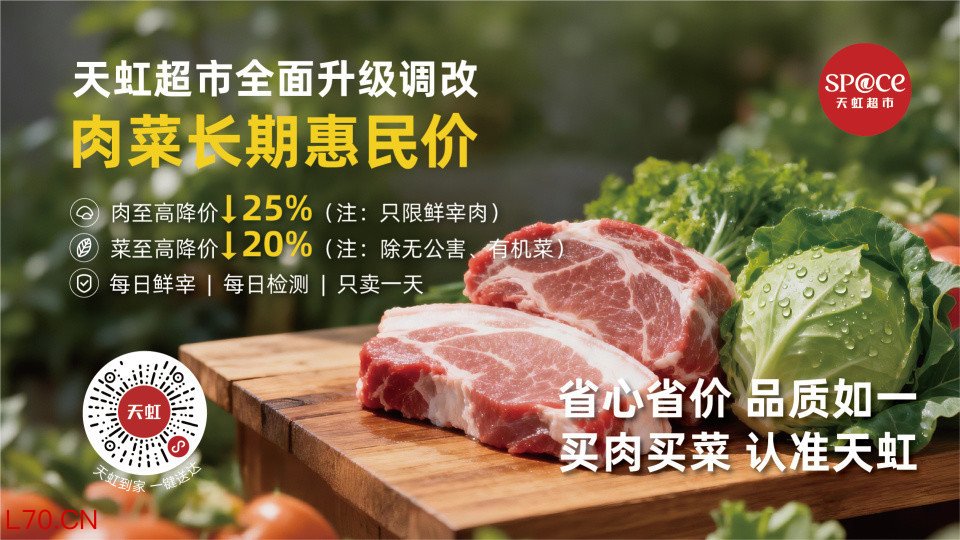 sp@ce 天虹超市3.0 升级:把“好物不贵”装进菜篮子此次肉菜长期惠民价,正是天虹 sp@ce 3.0 升级的集中体现。我们延续 “万物精良,生活有光” 的理念,通过两大核心升级,让品质与实惠真正兼得: